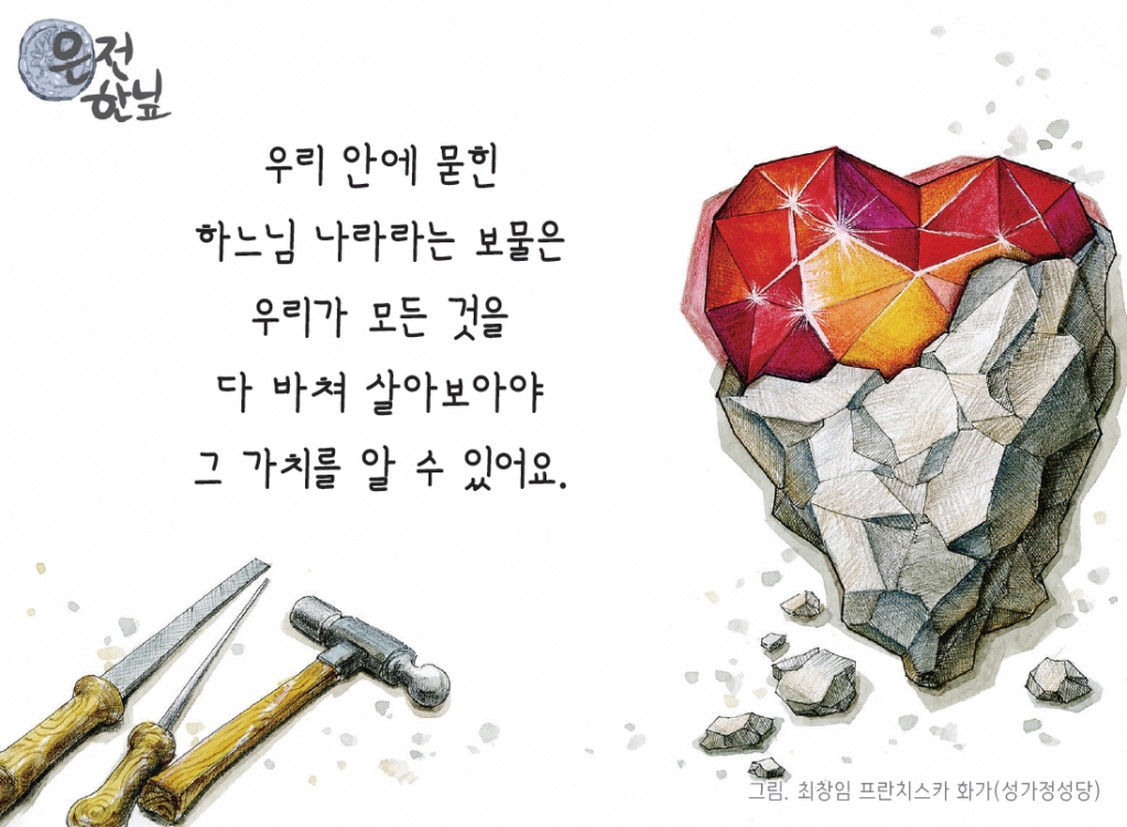 우리 안에 묻힌 하느님 나라라는 보물은 우리가 모든 것을 다 바쳐 살아보아야 그 가치를 알 수 있어요.
